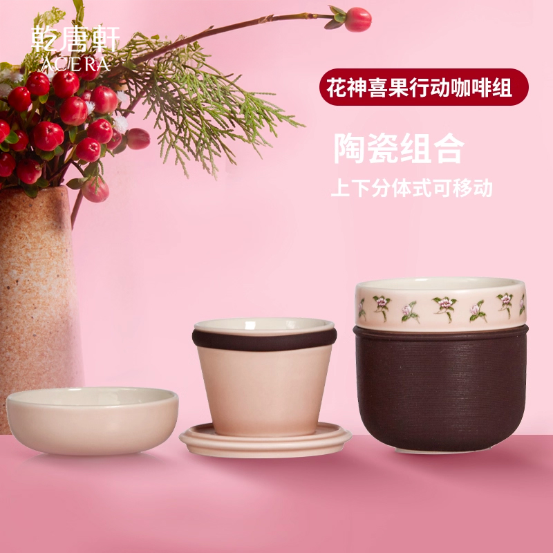 乾唐轩活瓷花神喜果行动咖啡组手冲咖啡套装 陶瓷三件组
