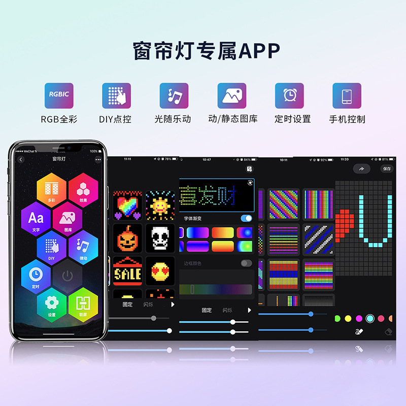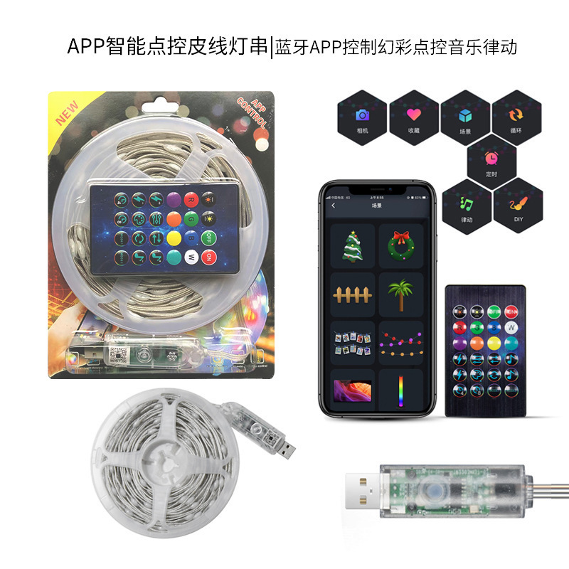 RGB幻彩皮线灯串户外防水APP蓝牙遥控变色圣诞树装 饰声控点控串灯