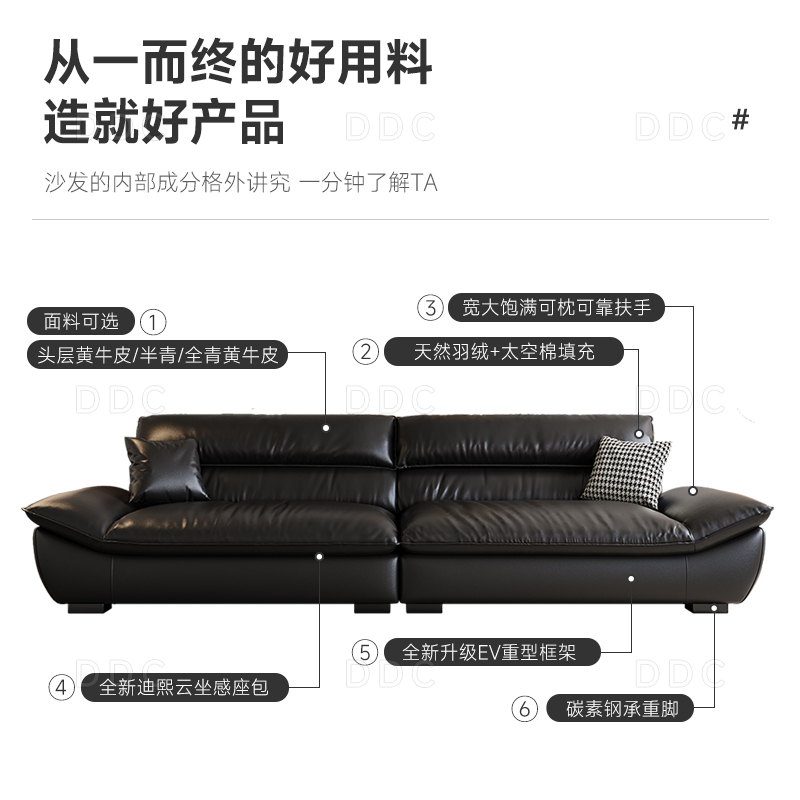 DDC意式 沙发政府补贴 极简帆船全真皮沙发黑色客厅头层牛皮新款