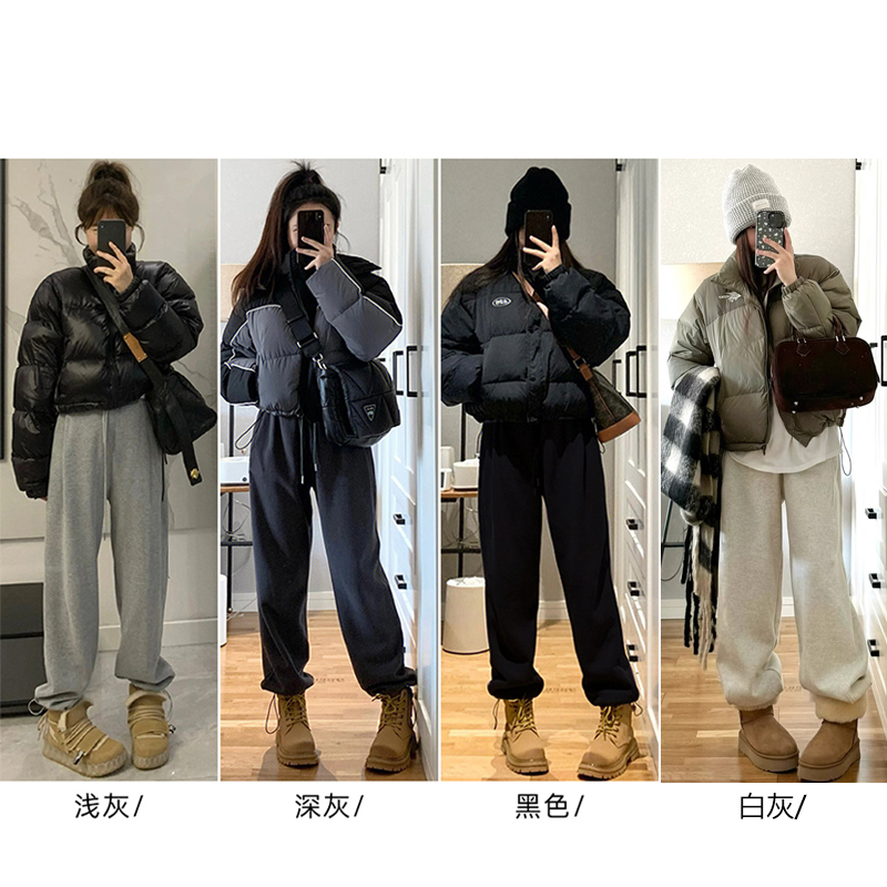 束脚休闲加绒加厚卫裤 高腰宽松阔腿美式 女秋冬2025新款 灰色运动裤