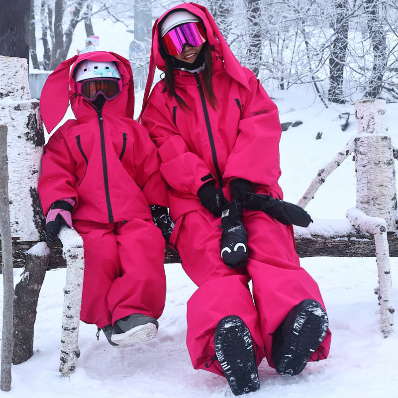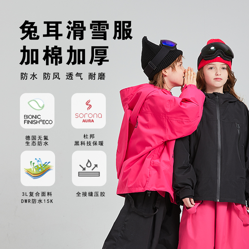 保暖防水专业男女童户外 兔子耳可爱冬季 DOOREK儿童3L滑雪服裤 套装