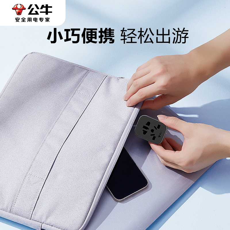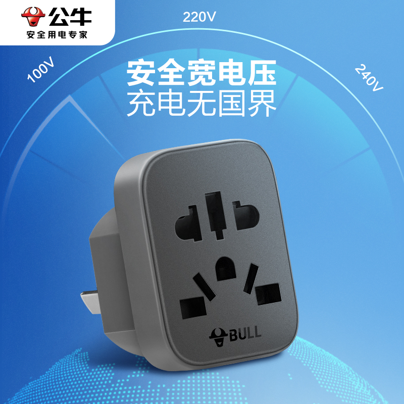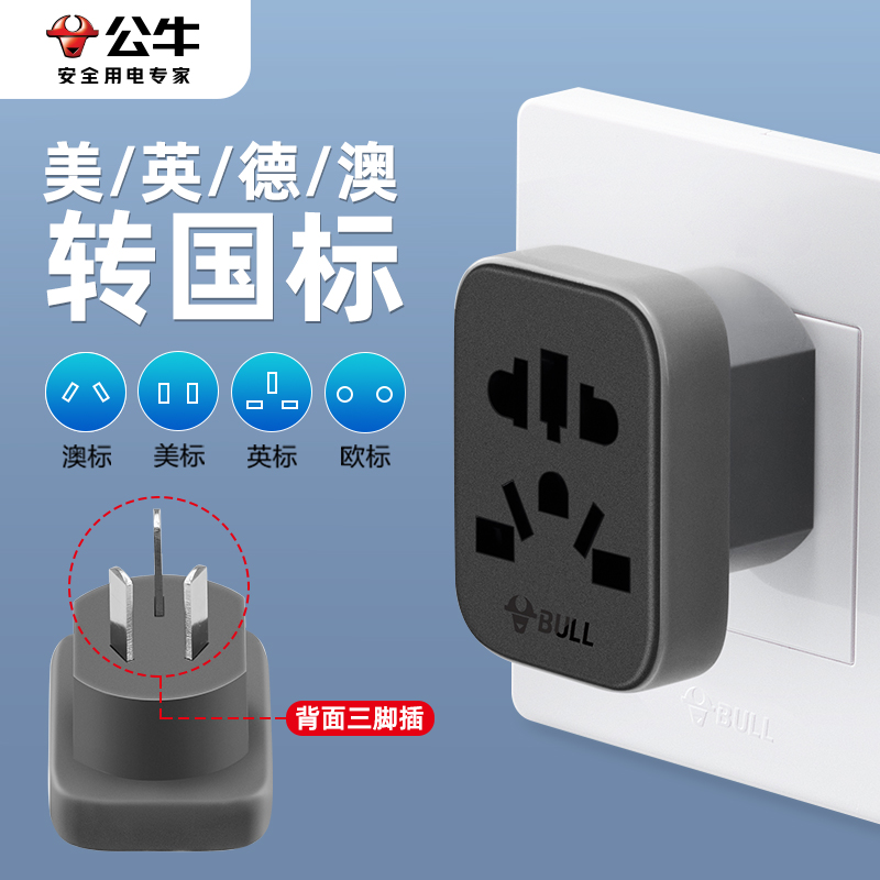 公牛插座转换器三转二国标转德欧标圆孔插头多国通用万能孔转换头