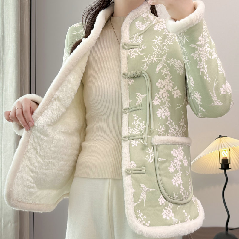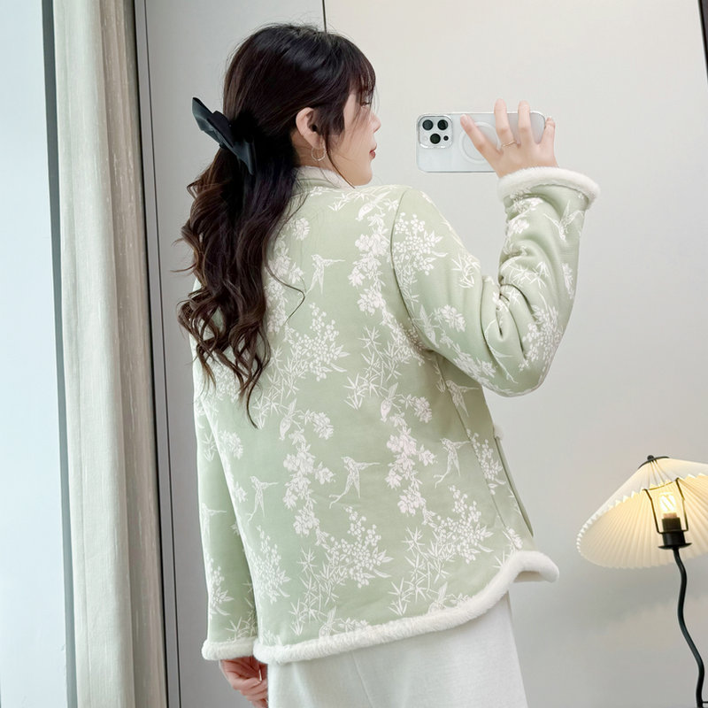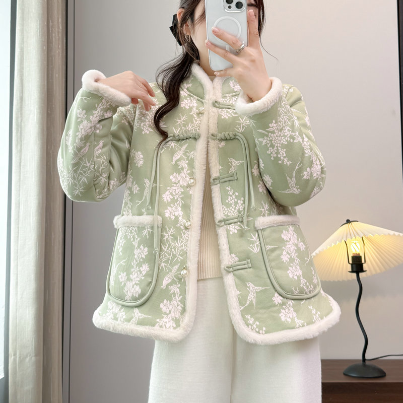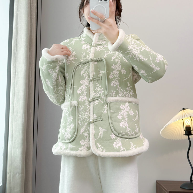 棉袄短款 JKJS 水貂毛夹棉外套新中式 人丝炒色提花 棉衣 风望川