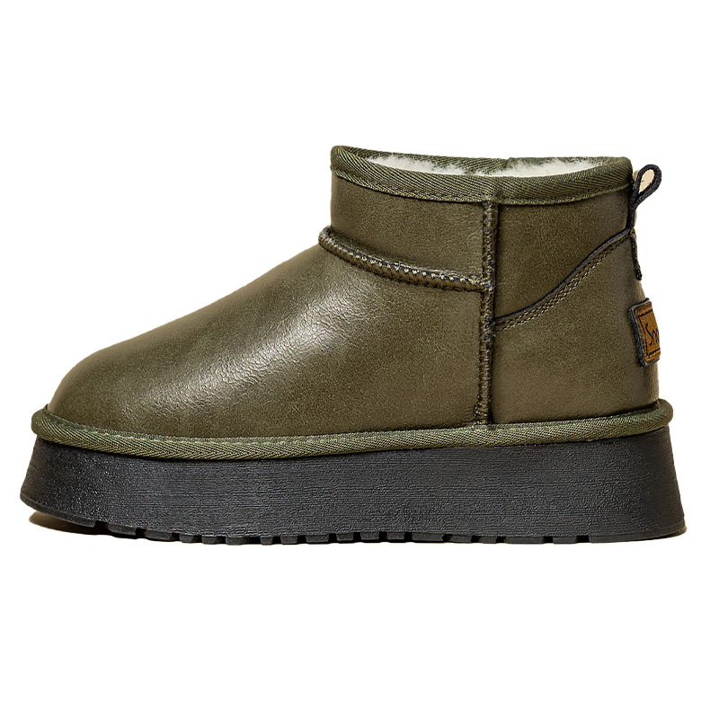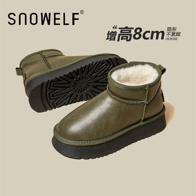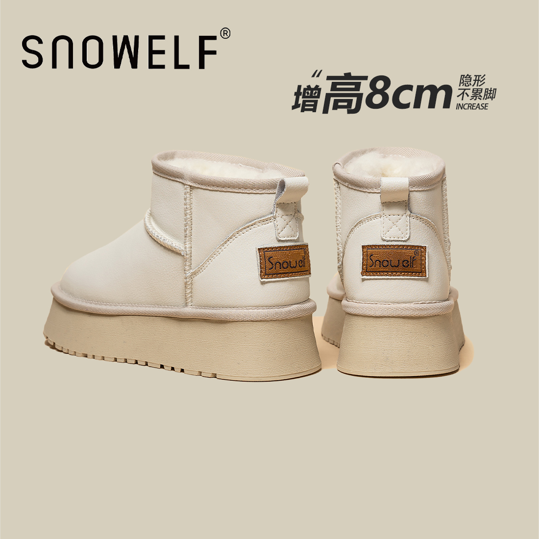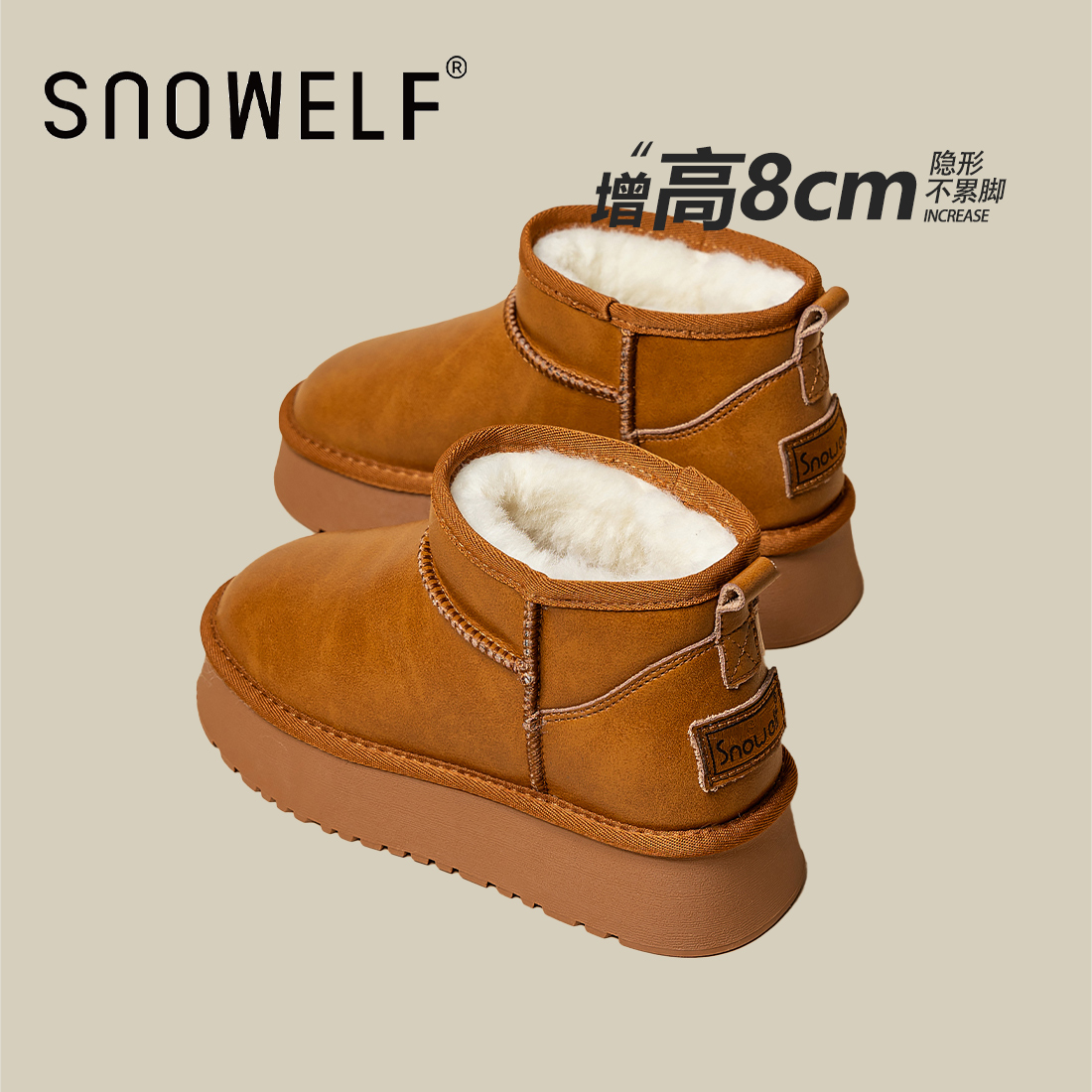 加绒加厚棉鞋 经典 新款 2025冬季 皮面防水短筒厚底雪地靴内增高女鞋