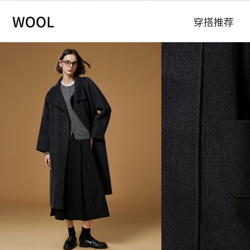 进口羊毛呢大衣长款 OCHIRLY欧时力 爆款 外套女秋冬新品 经典