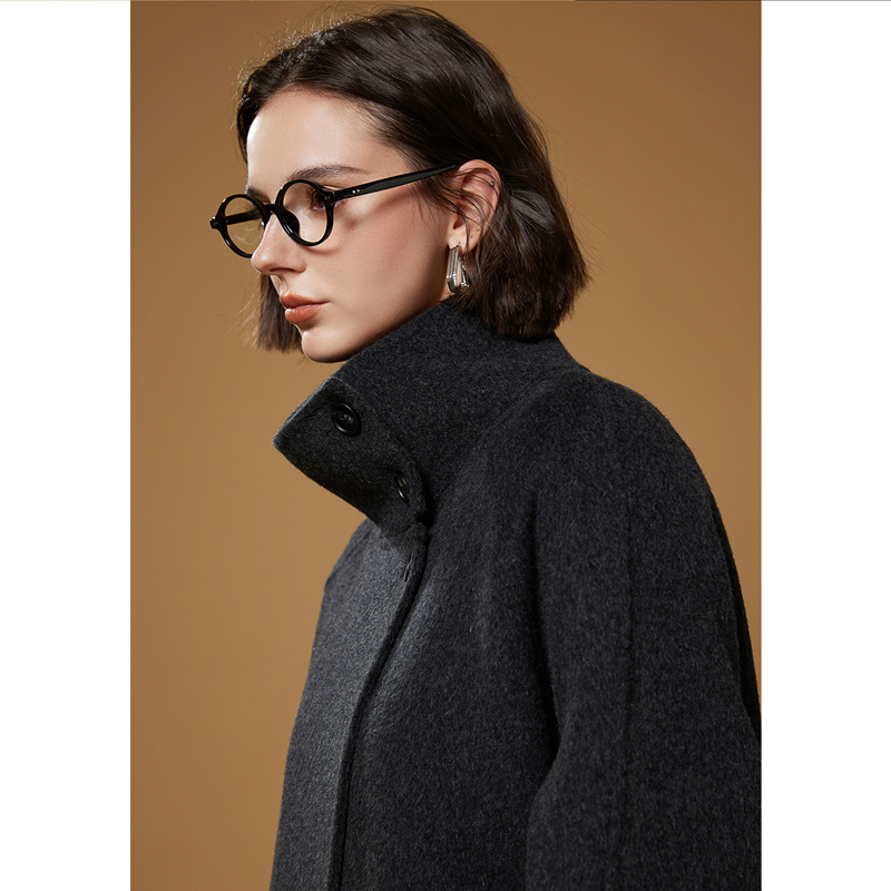 图曼朵灰色双面呢羊毛大衣女秋冬新款 毛呢短外套 高级感小个子短款