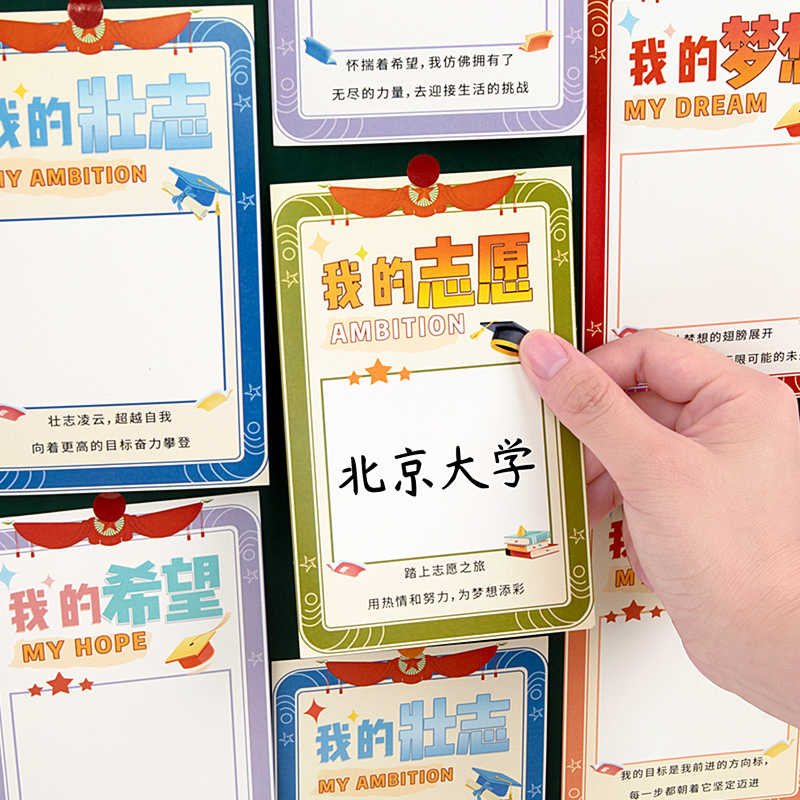 班级心愿卡创意中考心愿墙便利贴留言装 饰黑板报布置小红花夸夸墙贴背景板初三高中学习文化墙励志挑战目标卡