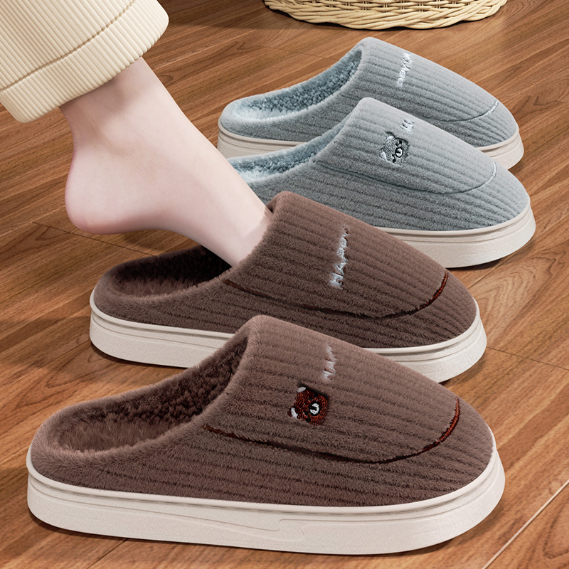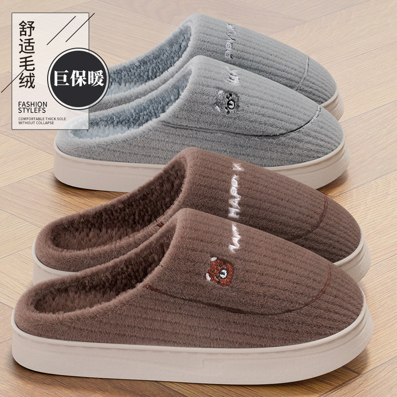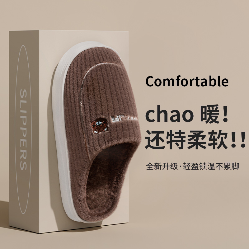 家居室内防滑厚底大码 加绒棉拖鞋 2025新款 秋冬季 保暖男毛绒 男士