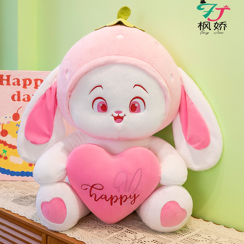 枫娇可爱草莓兔子毛绒玩具玩偶安抚陪伴娃娃抱枕公仔送女生日礼物