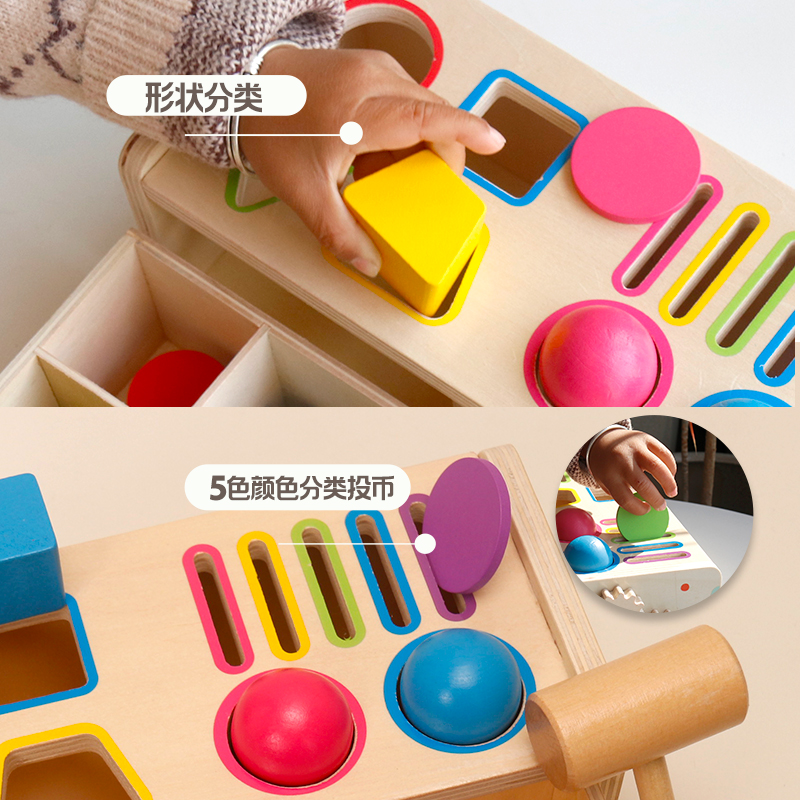蒙氏早教敲球投币分类盒宝宝颜色认知形状积木配对儿童益智玩教具