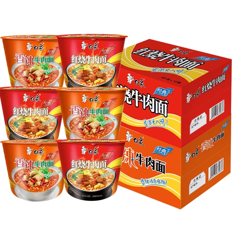 速食夜宵即食泡面 红烧香辣牛肉面多种口味装 白象经典 桶方便面桶装