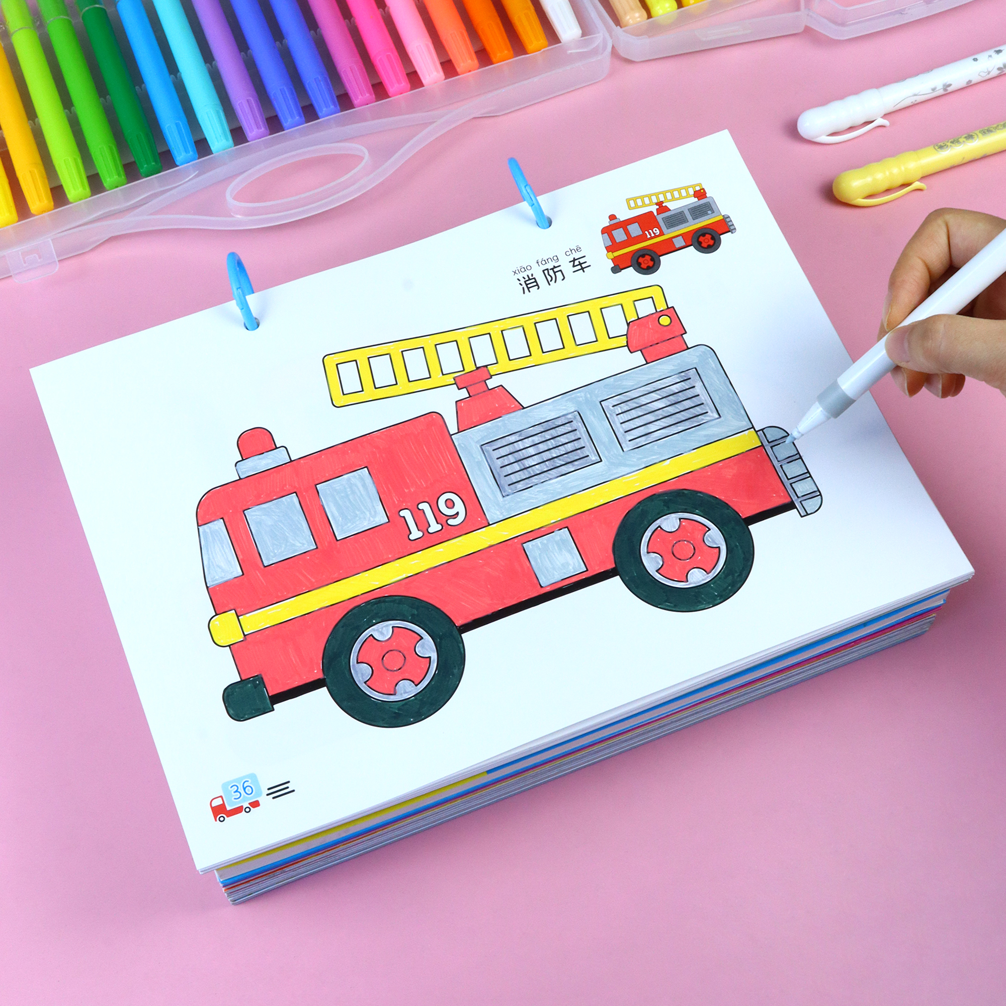 儿童涂色画本工程车交通汽车填色涂鸦图画绘本3 6岁幼儿园趣味画