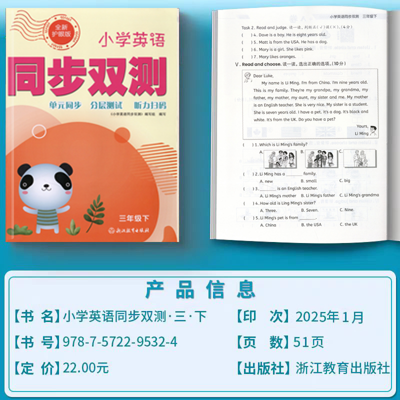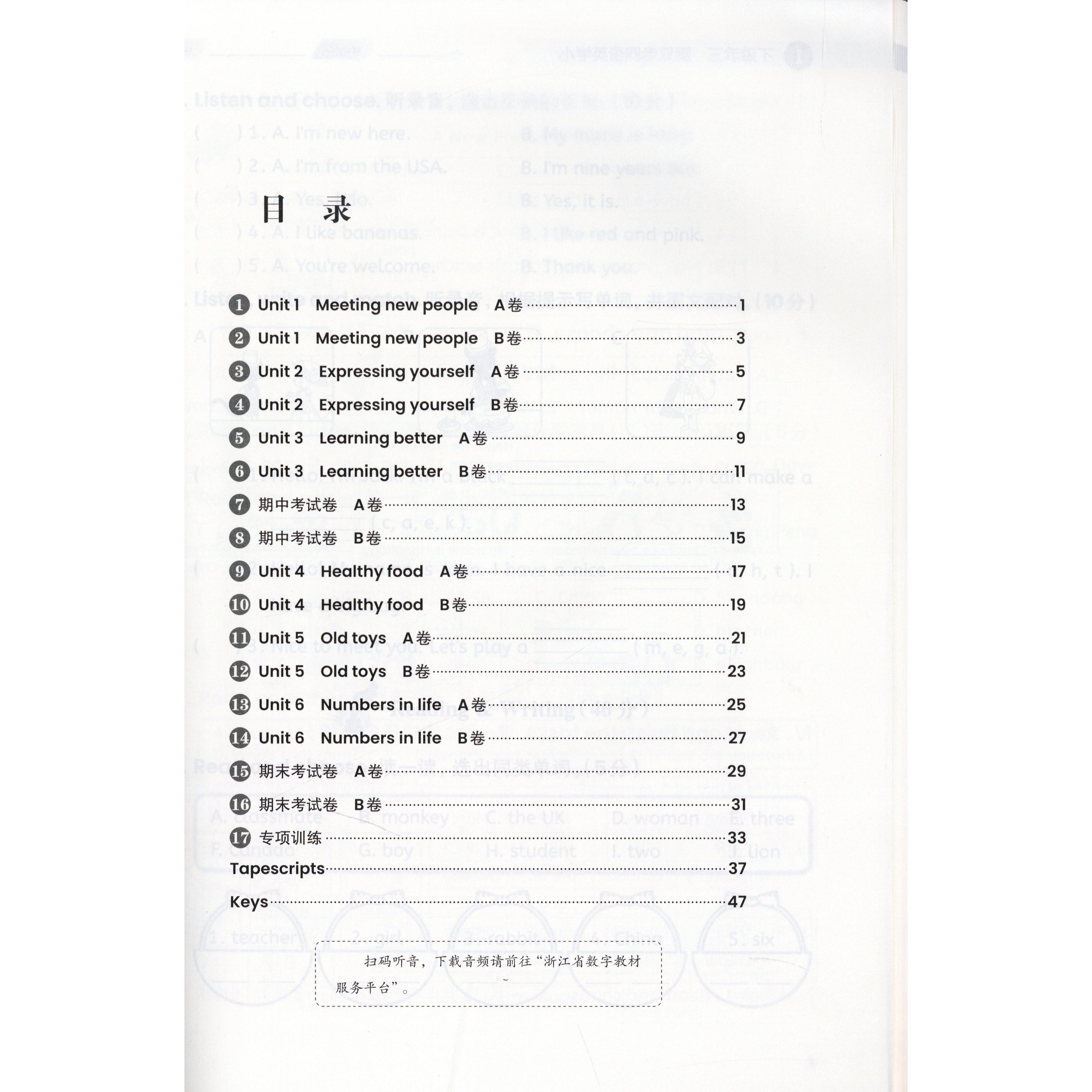 期末冲刺分层测试卷AB扫码 2024新版 单元 PEP全新护眼版 听力毕业考试卷新课标浙江教育 小学英语同步双测三年级下册同步人教版