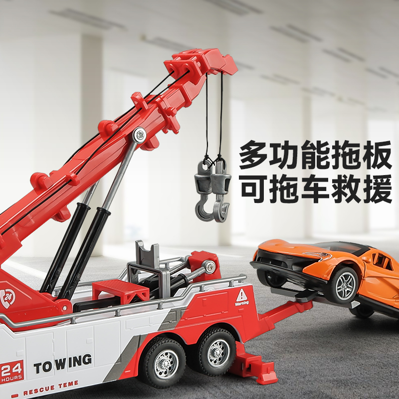 合金救援拖车吊车玩具道路清障车儿童玩具车工程车回力车男孩