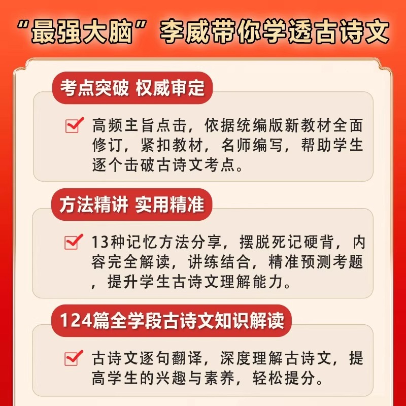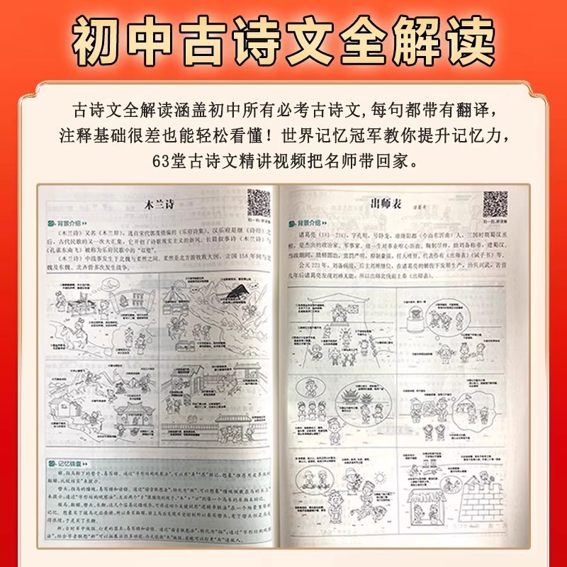 最强大脑记忆法必背古诗词同步教材讲解七八九年级三合一训练手册全析归纳考点 9年级全国通用 2025新版 李威初中古诗文全解读7