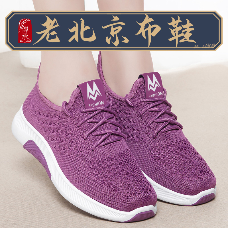 休闲软底运动飞织女士一脚蹬黑色妈妈单鞋 新款 子 女夏季 老北京布鞋