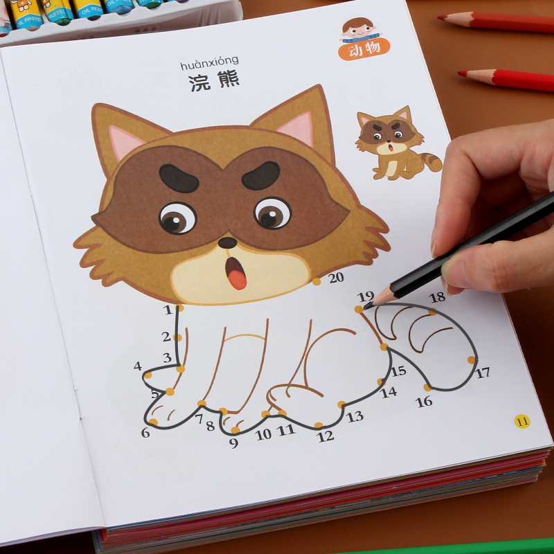儿童数字连线画画本宝宝专注力训练益智涂色绘本幼儿园启蒙图画本