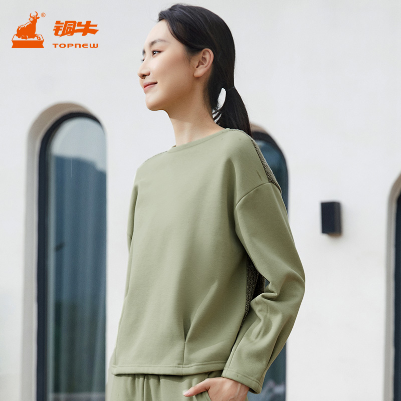 女VS257 衫 铜牛Bless单面磨毛布拼接女休闲居家上装 冬长袖