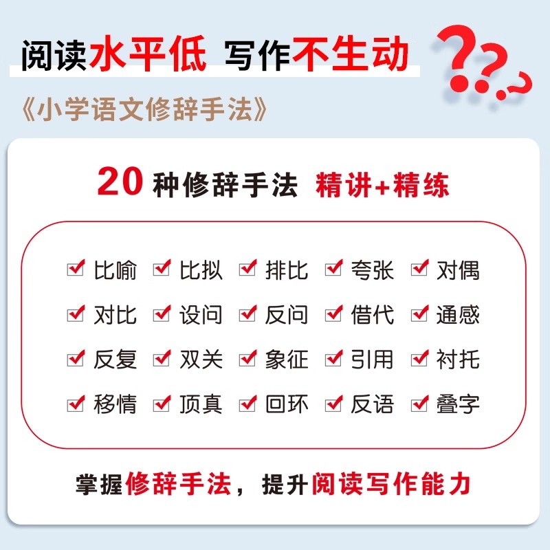 小学语文句子训练修辞手法大全 人教版 排比喻拟夸张对偶比设反问借代通感 作文写作句子训练 语文修辞手法积累训练大全 2024新版