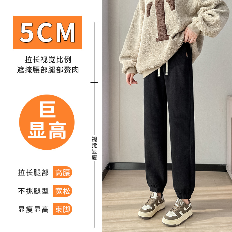 加厚春秋休闲裤 子仿羊羔绒加绒卫裤 女秋冬防风束脚裤 雪尼尔运动裤