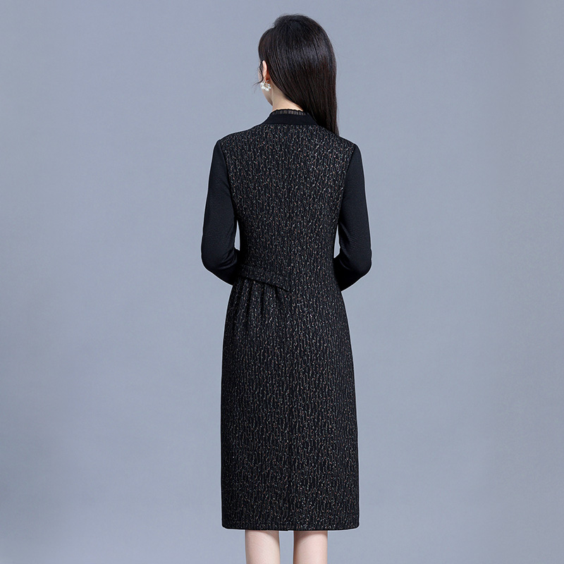 妈妈气质优雅显瘦内搭长袖 新款 打底裙 连衣裙2025秋季 埃伦立领长袖