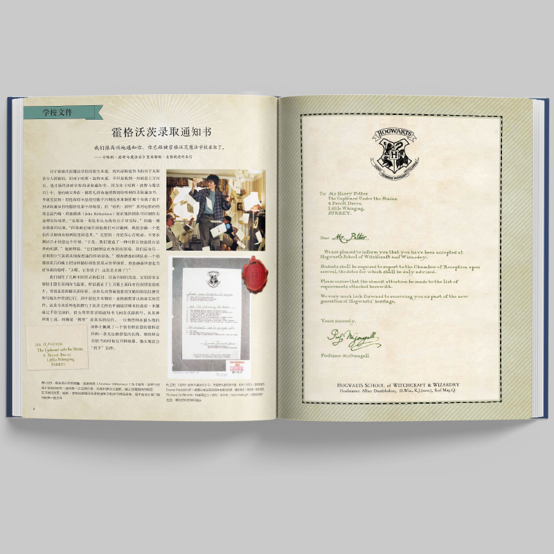 赠书签 华纳官方授权哈利·波特经典 海报 哈利·波特解析道具设定 设定8部电影9大主题概念艺术设计手稿电影剧照草图 通知书