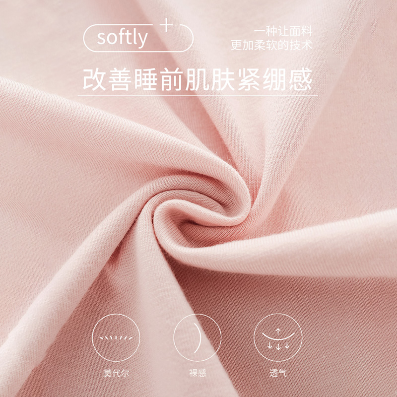 套装 宜而爽女士宽松透气家居服莫代尔裸感睡衣自带胸垫长袖 长裤