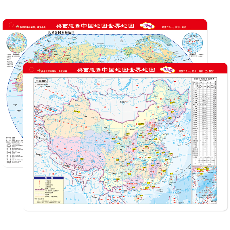 完形填空版 政区地形2合1 防水耐折 世界地图 桌面速查中国地图