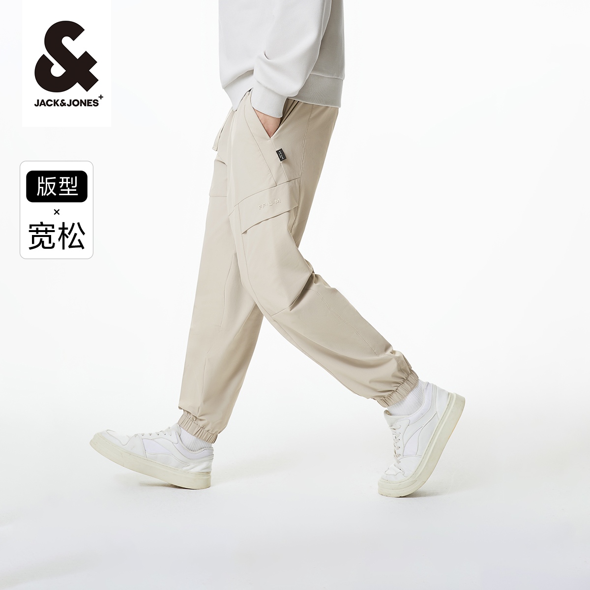 子男装 子男裤 中性衣服字母胶印弹力束脚休闲裤 杰克琼斯春季