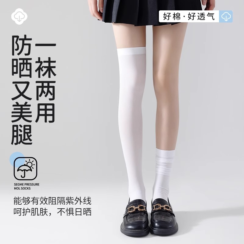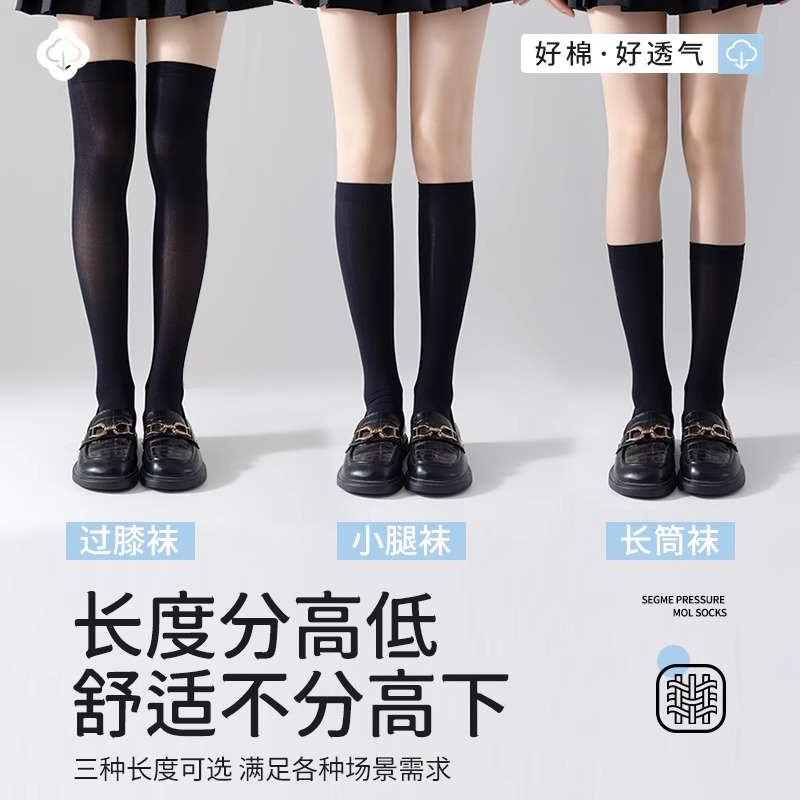 小腿袜子女春秋季 JK潮 过膝袜纯棉中筒袜微压显瘦无骨长筒长袜夏季