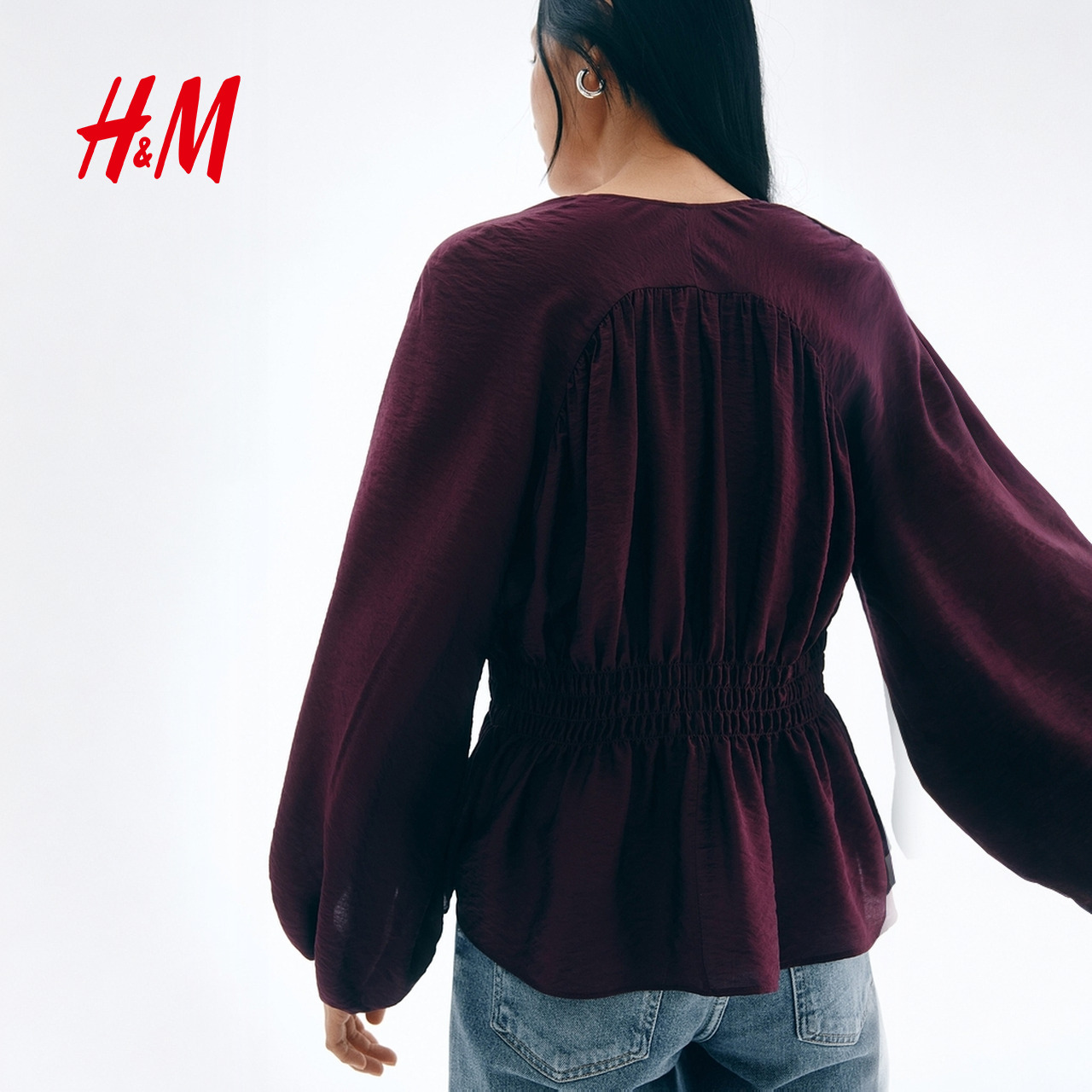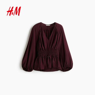 新款 2025年秋季 插肩袖 V领灯笼袖 1300636 HM女装 气质褶皱衬衫 衬衫
