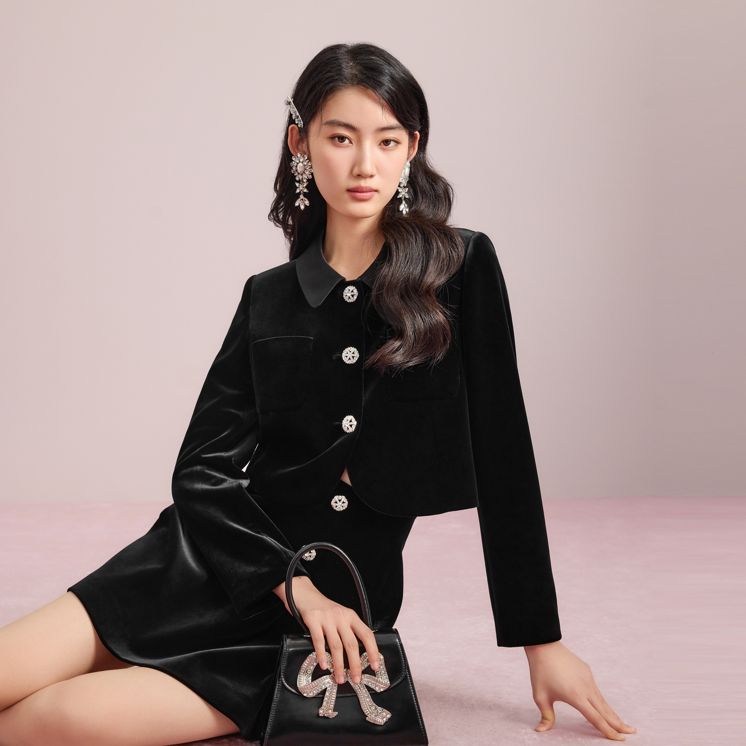 摇粒绒外套小香风上衣千金风气质开衫 女士短款 新款 雪中飞2025秋季