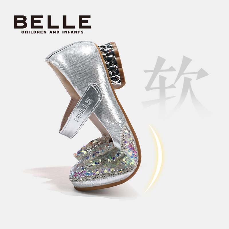 新款 时尚 单鞋 百丽童鞋 儿童小高跟皮鞋 秋季 小女孩水晶鞋 女童公主鞋