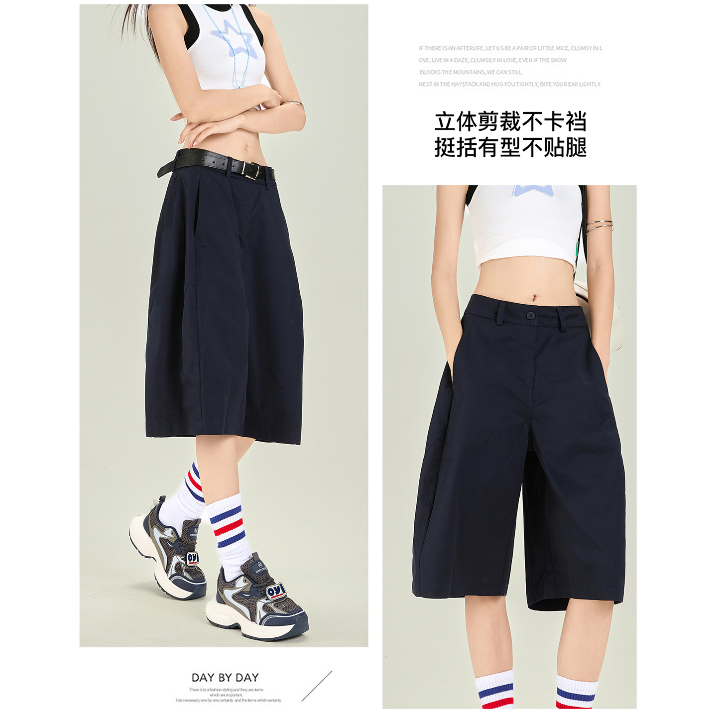 运动短裤 美式 宽松垂感纯棉休闲阔腿工装 子女夏2025新款 复古五分裤