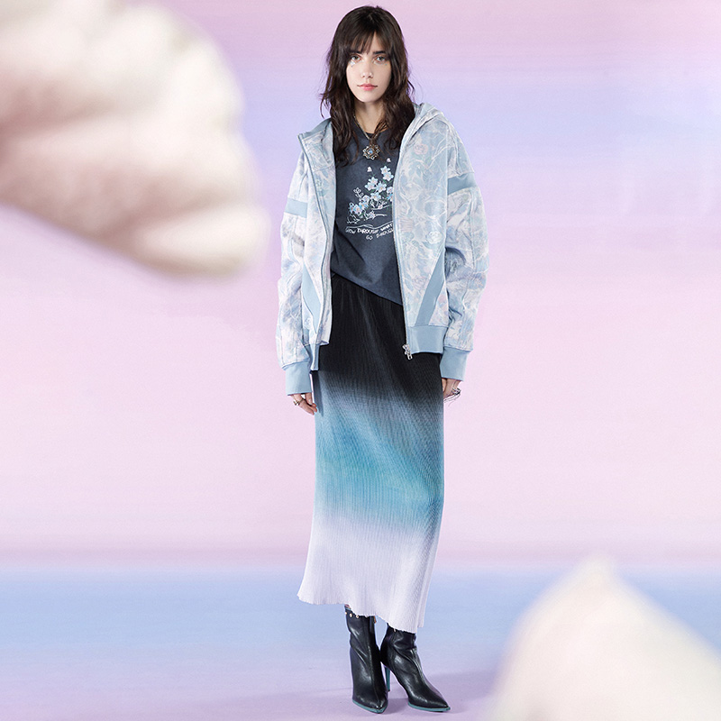 直身西装 Fabrique烟灰色褶裥短款 灰色半身裙女秋 章若楠同款