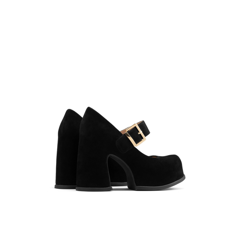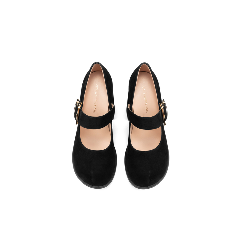 瓢鞋 方扣红色单鞋 百思图25秋新款 粗跟浅口女平底婚鞋 丝绒玫瑰