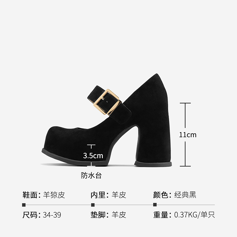 单鞋 羊皮浅口法式 千百度粗高跟鞋 异形跟职业通勤大码 静音系列