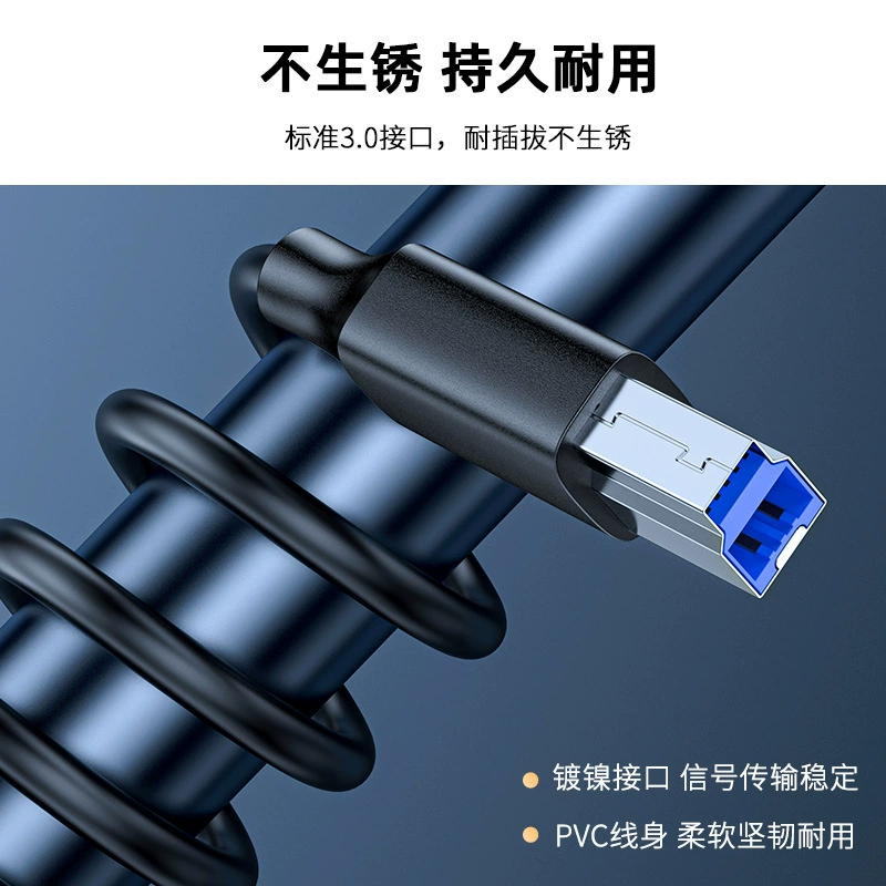 扫描复印机适用惠普佳能高速传输线专用USB3.0接口B方口数据线加长3米电脑笔记本连接线打印机外置光驱硬盘盒