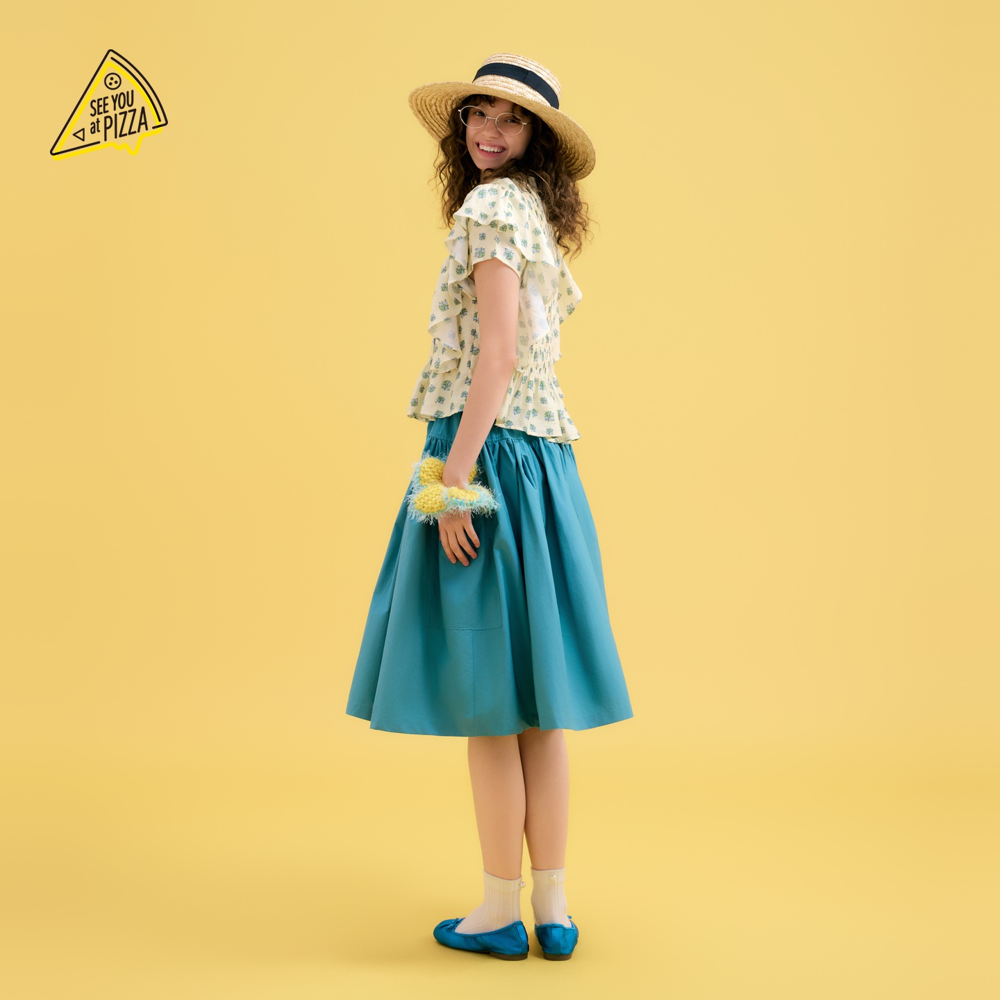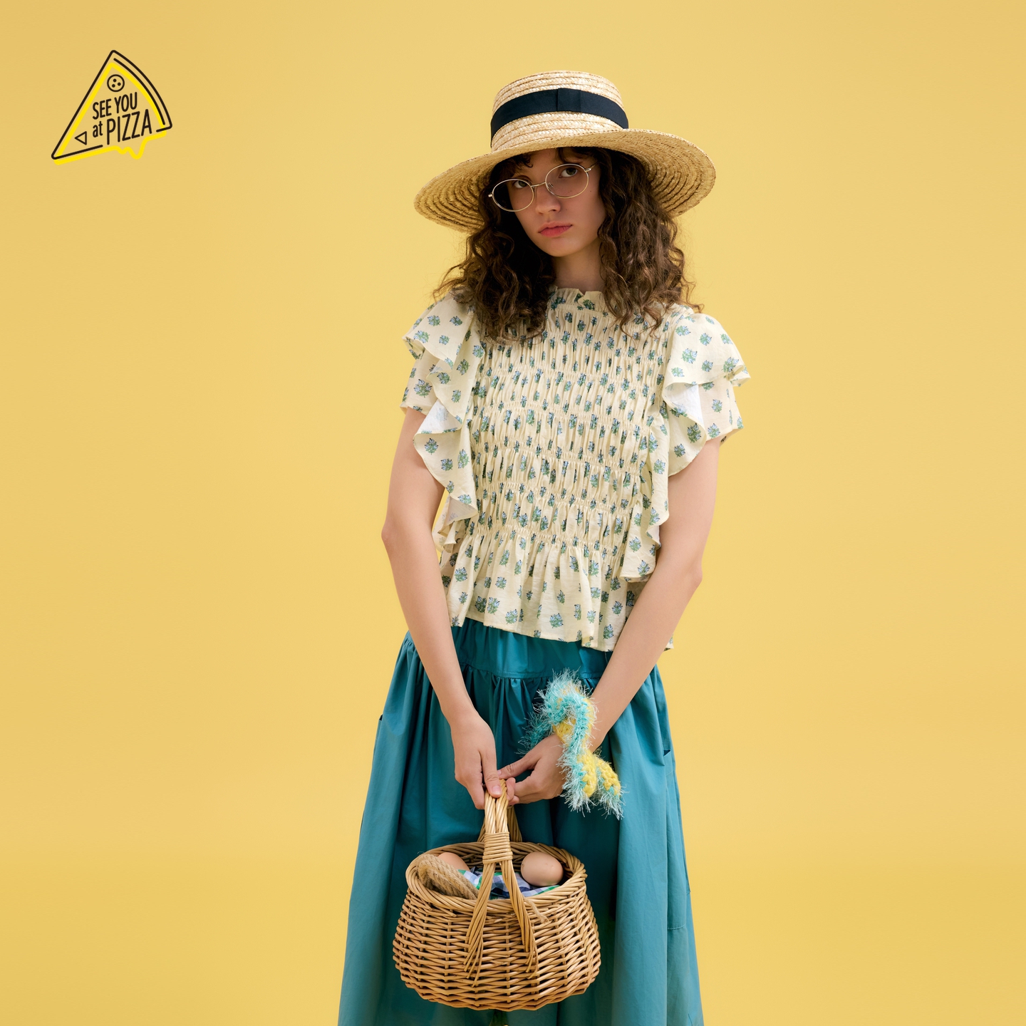 18345614 女长袖 设计师款 佐丹奴宽松miu系学院风花边立领格纹衬衫