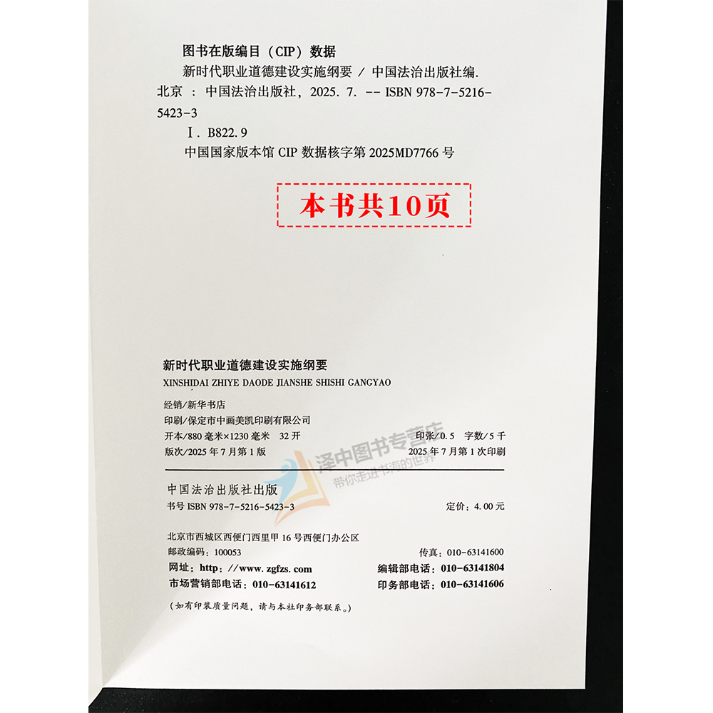 中国法治出版 新时代职业道德建设实施纲要 社9787521654233 2025新书 正版