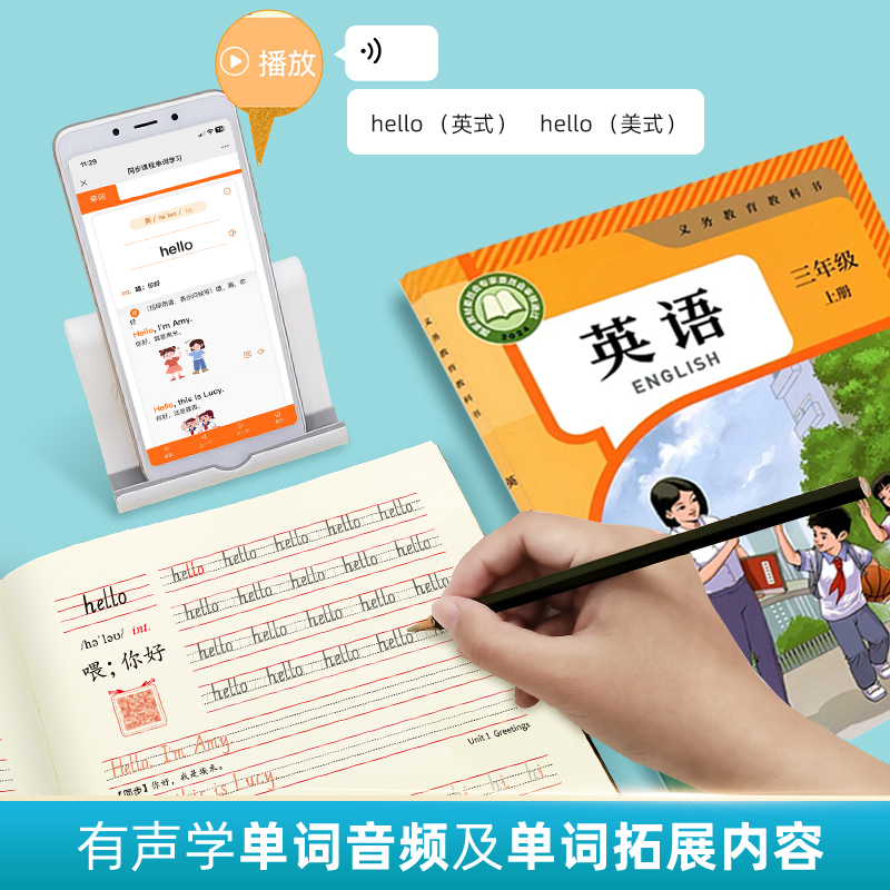 2025年新款 英语练字帖英语教材同步单词句型硬笔描红本小学生三四五六年级上册下册英文课本同步词汇临摹写字本每日一练 精通人教版