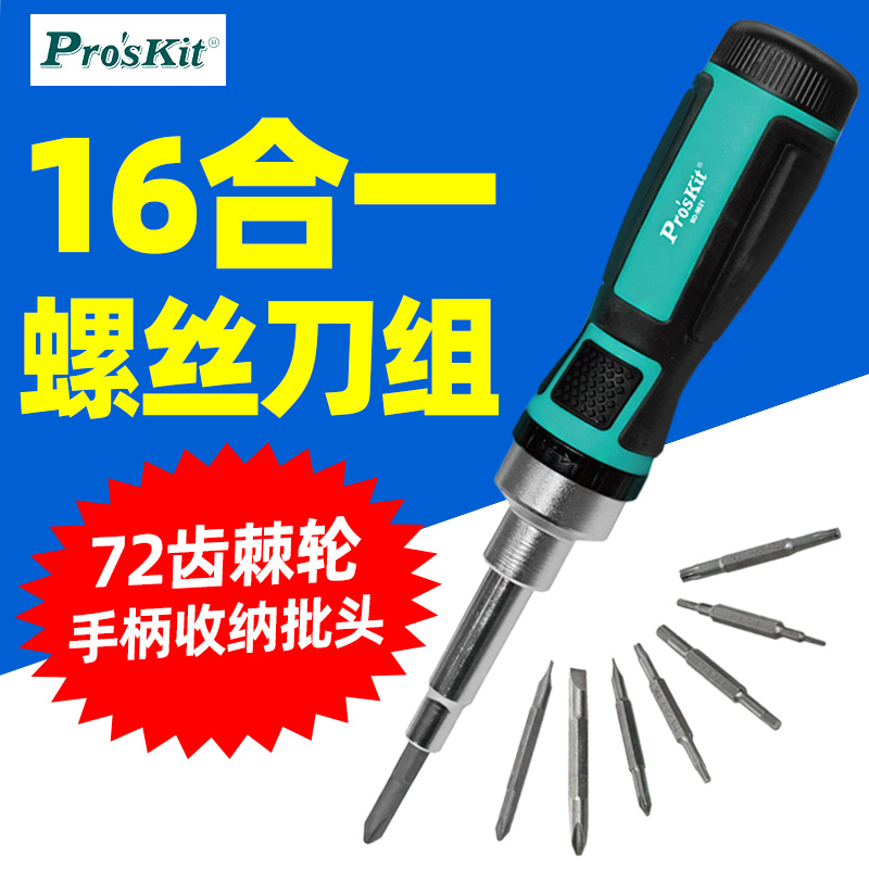 16合1棘轮起子组十一字72齿正反转双头螺丝刀套装 宝工SD 9821