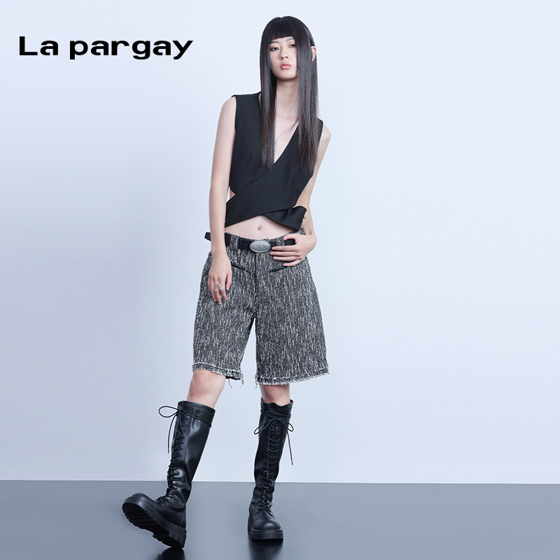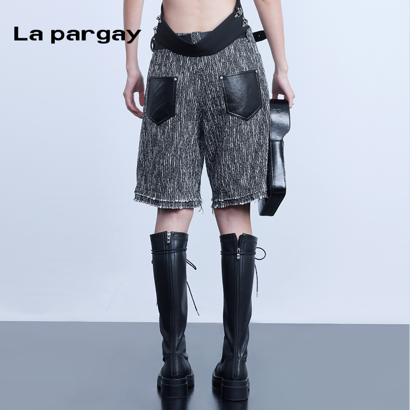 休闲高腰小众裤 纳帕佳小香风毛边五分裤 个性 女式 子潮 2025春夏新款