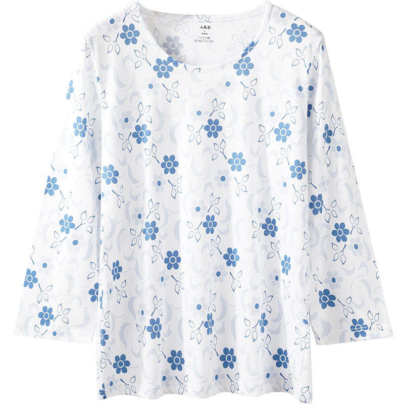 打底衫 上衣中老年夏季 圆领九分袖 AB内衣女士纯棉家居服睡衣妈妈装