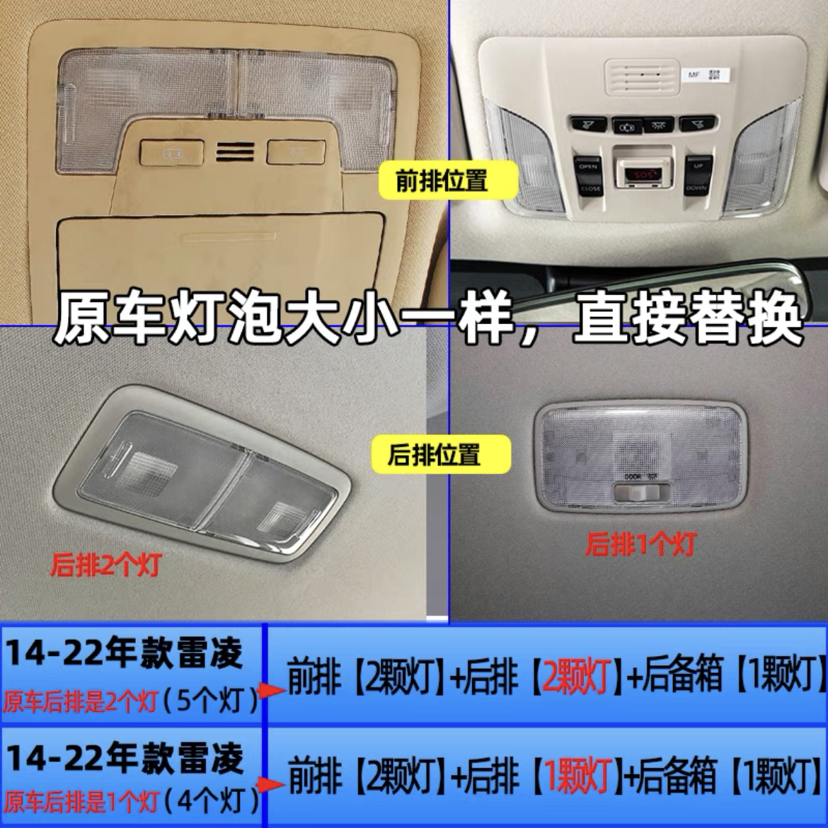 LED阅读灯 丰田雷凌室内灯17车顶灯15后备箱双擎改装 适用于14 24款