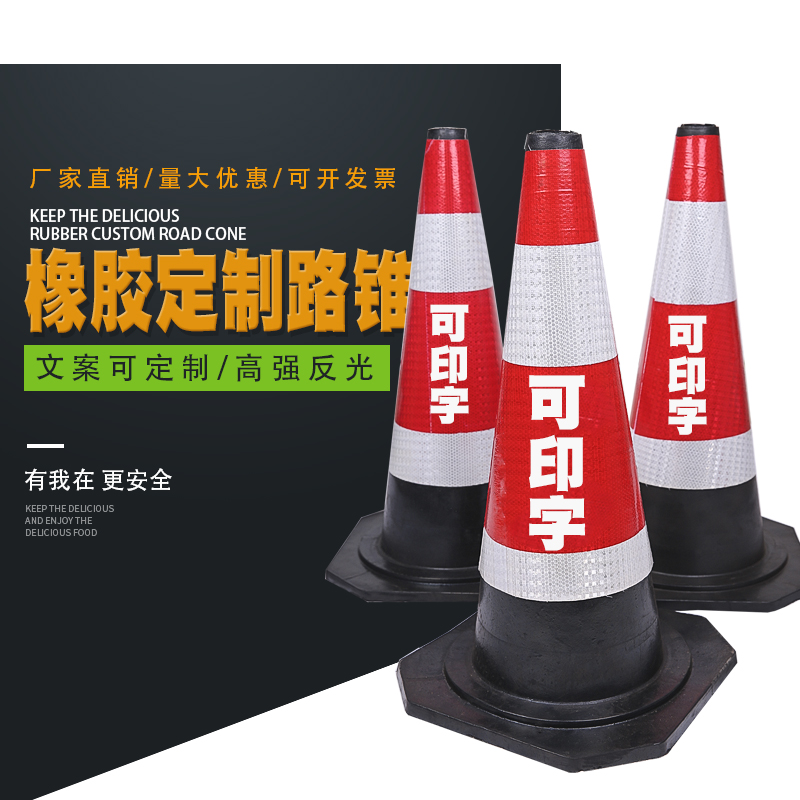 橡胶路锥70cm三角圆锥雪糕筒90cm高速反光锥橡胶方锥锥形桶提环锥