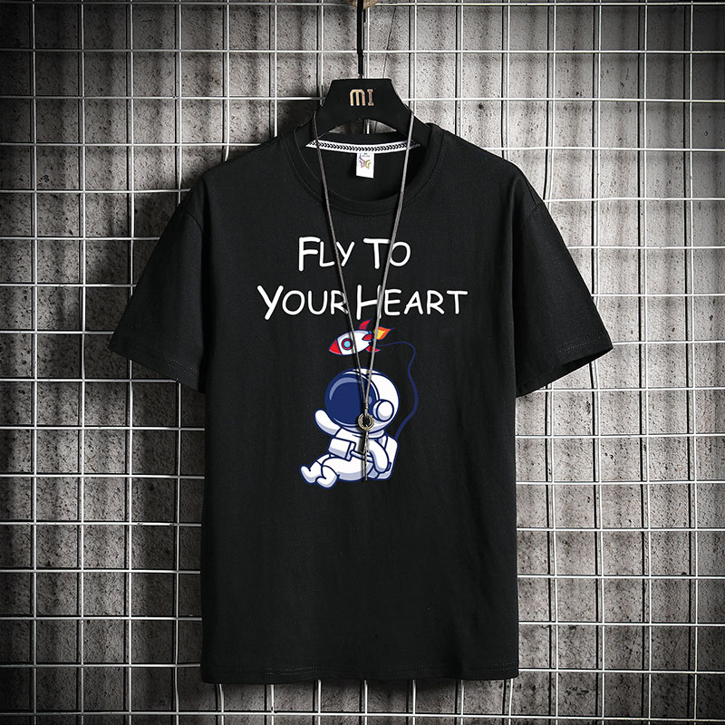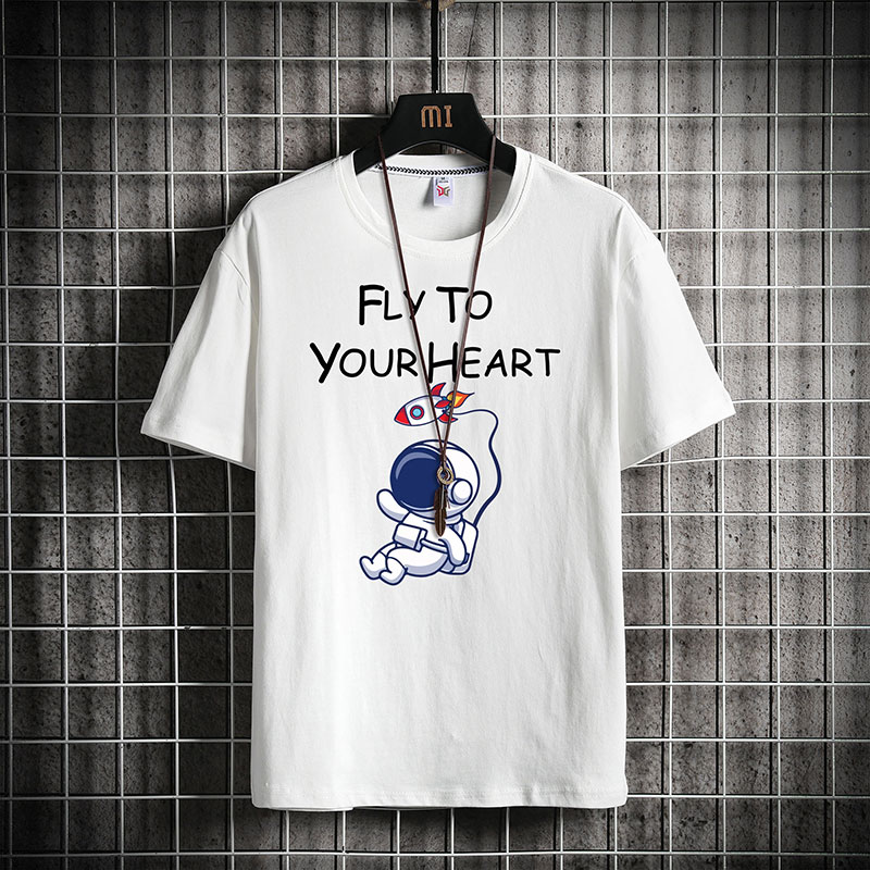 宽松半袖 t恤男潮青少年纯棉打底男生夏季 太空人印花短袖 2025新款