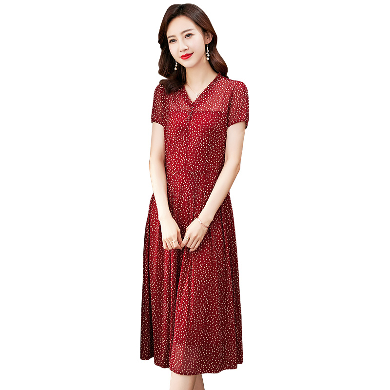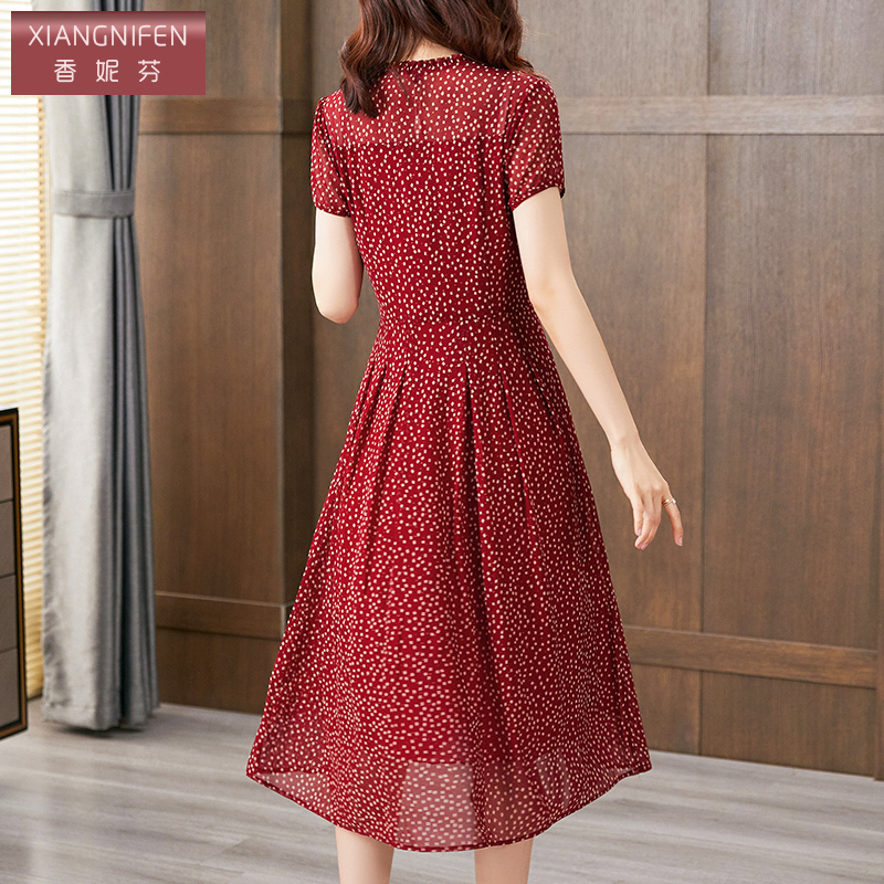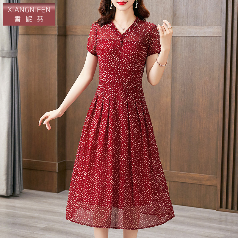 短袖 秋夏装 高端台湾纱 洋气中年妈妈连衣裙2024新款 香妮芬红色时尚