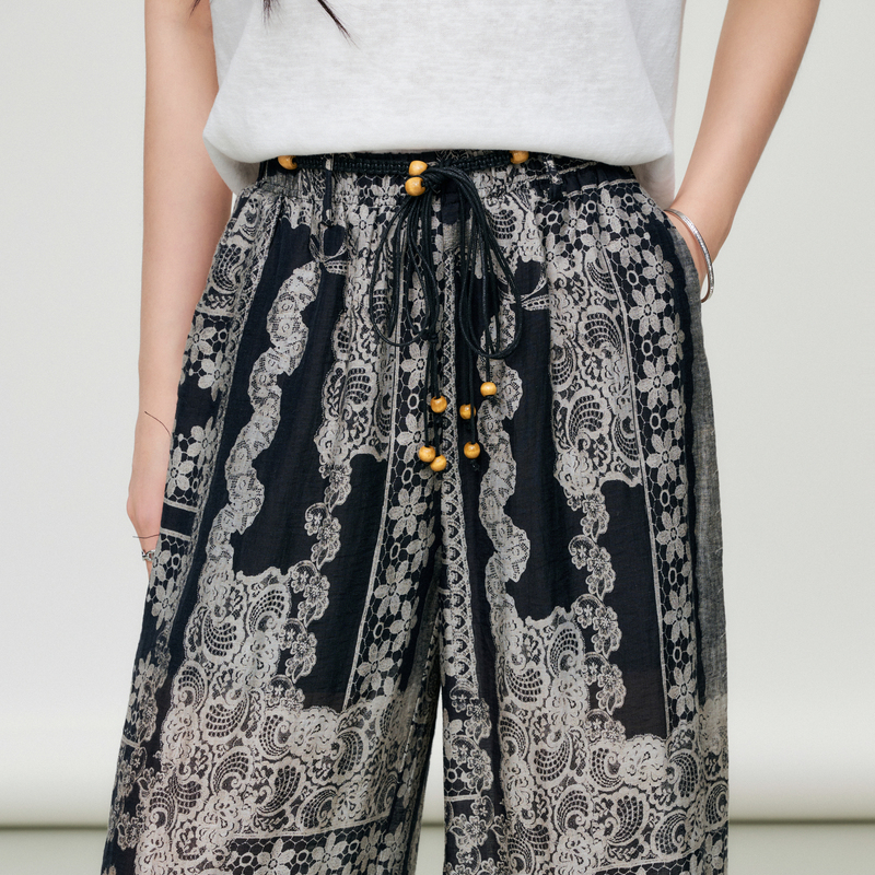 House 垂感阔腿直筒裤 百家好复古印花休闲裤 小个子窄版 夏季 Basic