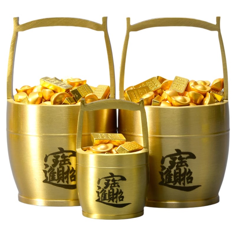 一桶金摆件黄铜聚宝盆黄铜招财聚财客厅办公室桌面金元 饰品 宝装